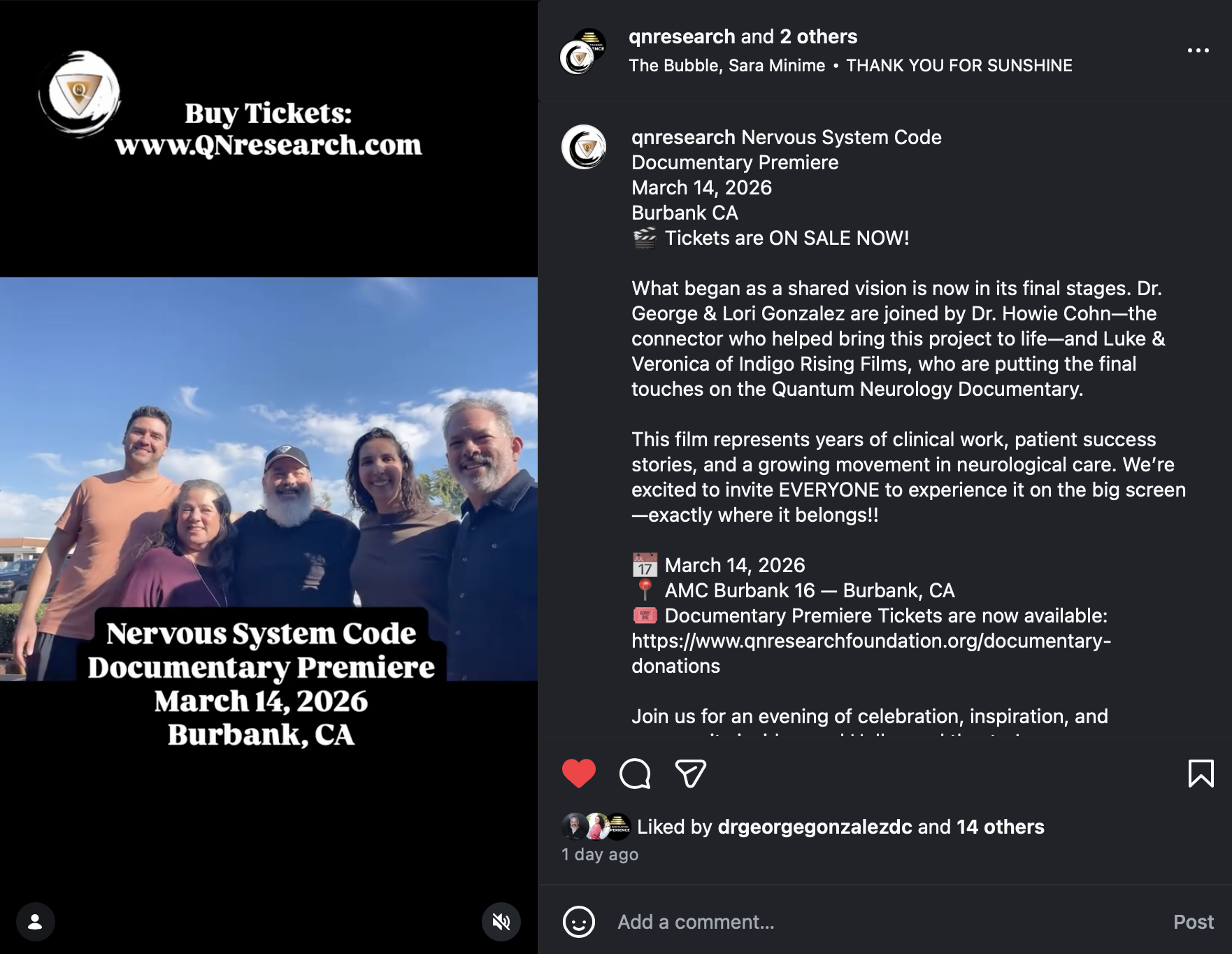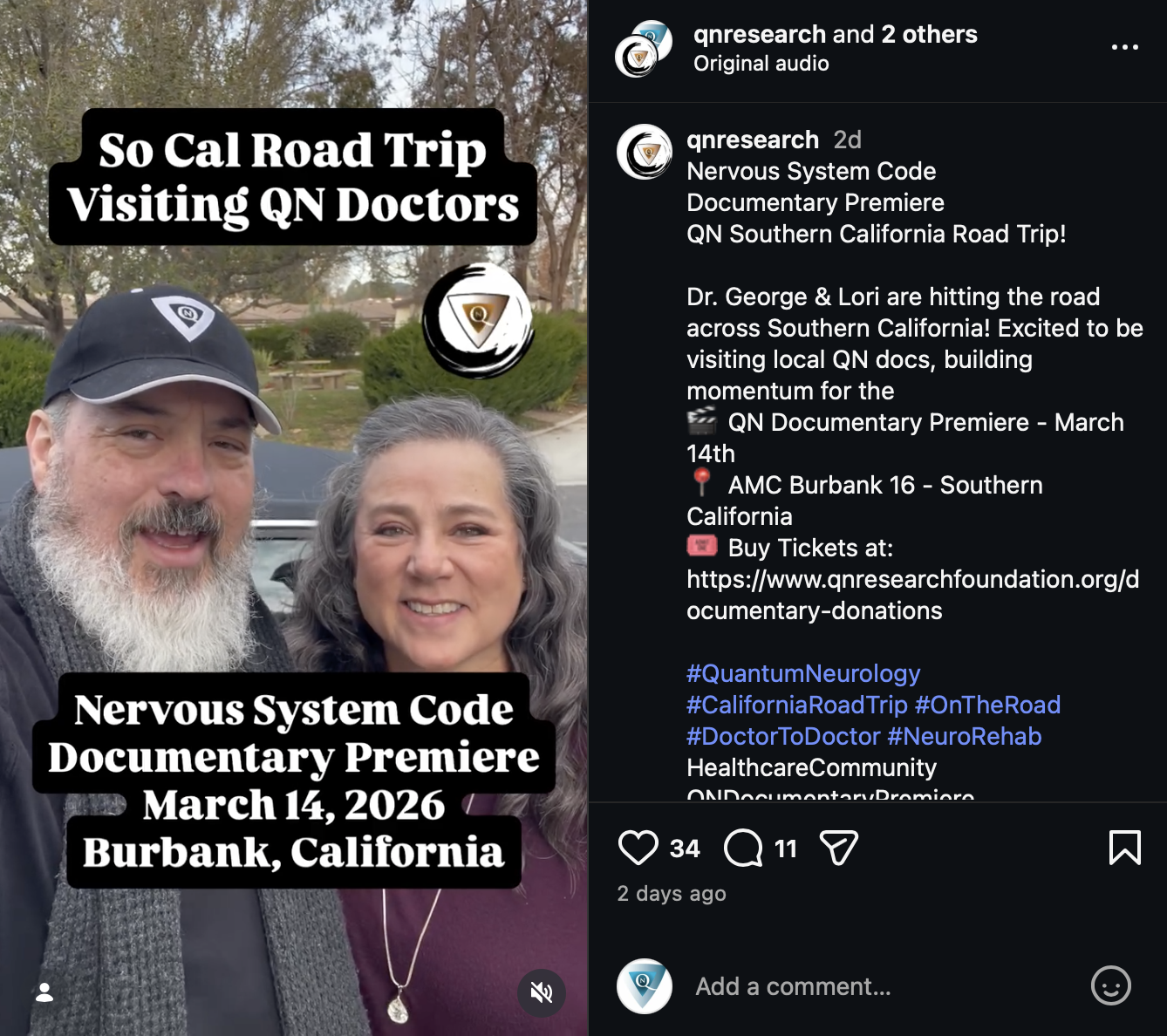In the early morning hours earlier this week, with the car packed and coffee in hand, Dr. George Gonzalez and his wife, Lori, set out on a Southern California road trip with a clear purpose: to personally connect with the doctors, practitioners, and their patients who have helped shape Quantum Neurology—and to invite their communities into the next chapter with the QN Documentary Premiere.